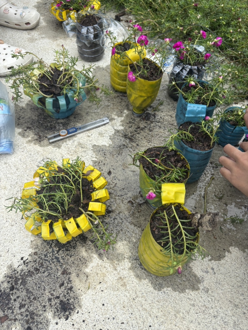 ????ด้วยสร้างอาชีพจากการนำวัสดุรีไซเคิล(ขวดพลาดสติก) มาทำเป็นกระถางปลูกต้นไม้ เพื่อเป็นการลดขยะในครัวเรือน สร้างพื้นที่เพาะปลูกเพื่อเป็นอาหารและเป็นรายได้เสริมให้กับครอบครัวและชุมชน