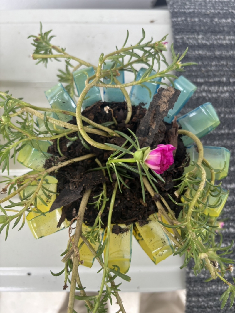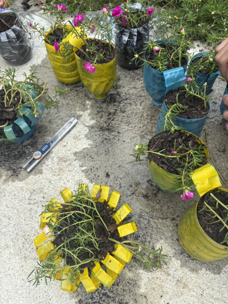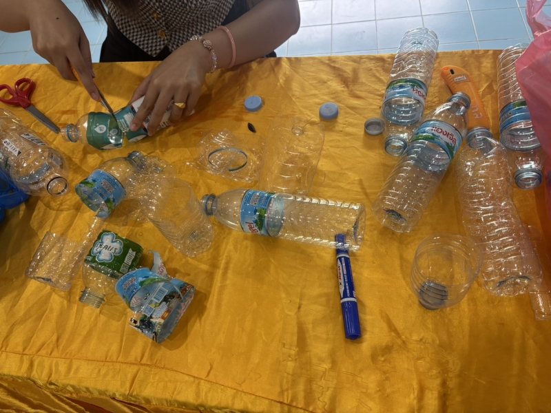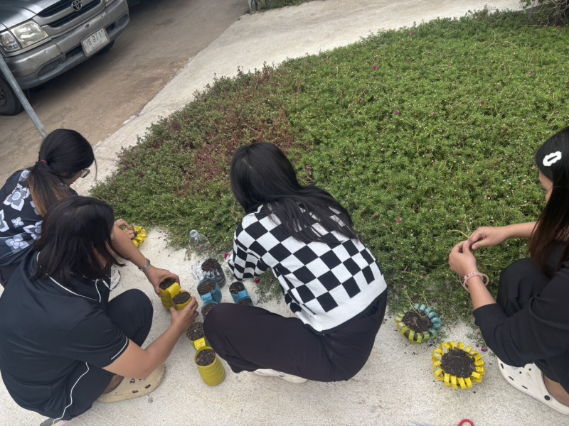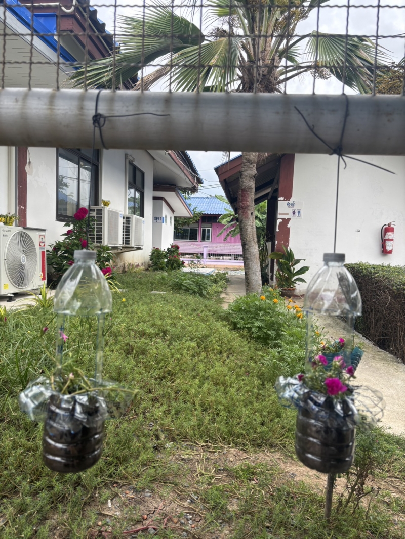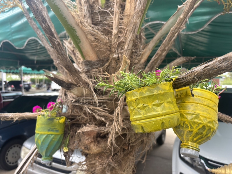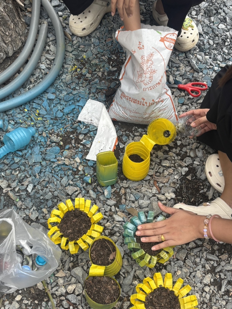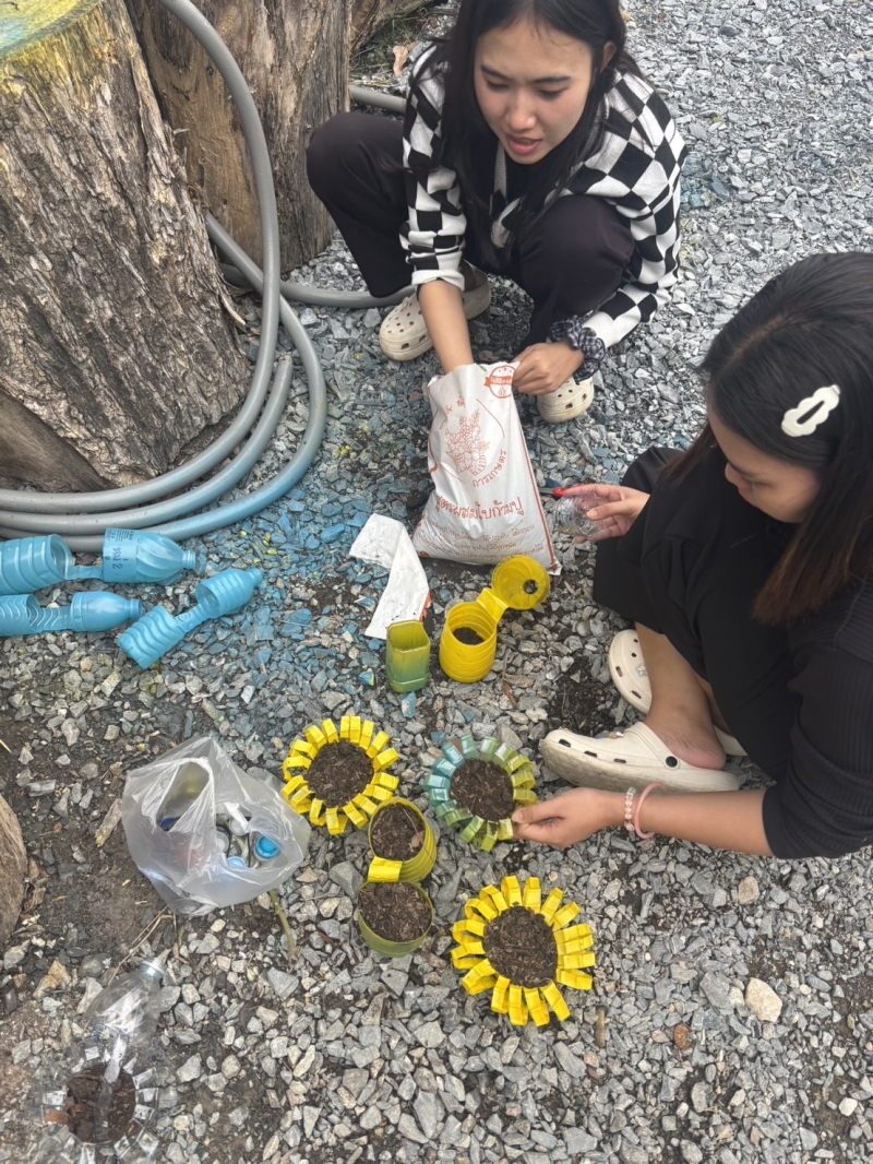 ????ด้วยสร้างอาชีพจากการนำวัสดุรีไซเคิล(ขวดพลาดสติก) มาทำเป็นกระถางปลูกต้นไม้ เพื่อเป็นการลดขยะในครัวเรือน สร้างพื้นที่เพาะปลูกเพื่อเป็นอาหารและเป็นรายได้เสริมให้กับครอบครัวและชุมชน